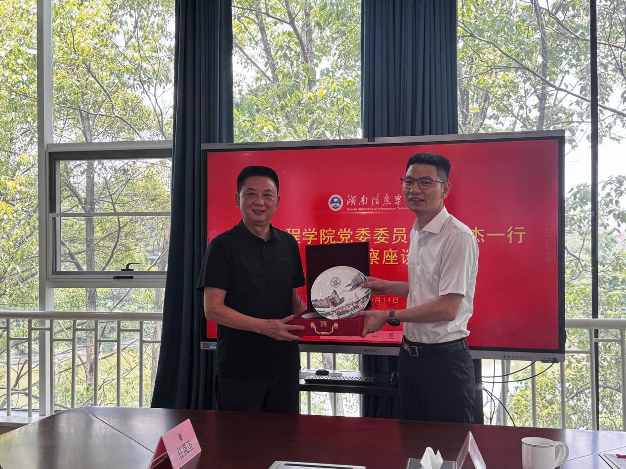 在湖南信息学院,湖南信息学院校长张福利、副校长胡新文对乐俊杰一行予以热情接待,考察团先后参观了该校实训中心、智业大厦、被教育部誉为“中国高校第一连·兄弟连”、塘湾湖大剧院等地。在座谈会上,胡新文介绍了该学院的基本情况和下一步发展思路,他表示,两校办学有诸多相似的发展轨迹,合作空间广、潜力大,希望双方进一步加强交流与合作,取长补短,共同发展。乐俊杰对湖南信息学院近年来的办学特色和成效给予高度评价,同时介绍了我校近年来主要办学成效。他表示,我校和湖南信息学院在办学定位和发展路径上有很多相似之处,希望以此次交流为契机,学习借鉴湖南信息学院在发展规划、学科建设、服务地方经济社会发展等方面的经验做法,加强合作交流、相互学习、携手并进。考察组一行围绕调研主题进行了深入交流。