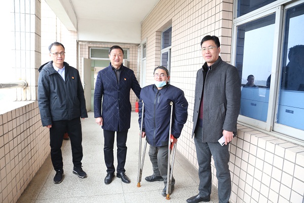 胡涌书记一行首先在学校先后到实验实训中心、财务处、医务所、外语外贸学院、人工智能学院看望了孙水生老师等5名患病或生活困难党员与教职工。每到一处,胡涌书记都为他们送上了新春的祝福和慰问金,并与他们亲切交谈,详细询问他们的身体状况、家庭生活状况、子女学习和就业等情况,倾听他们的困难诉求和生活愿望。胡涌书记赞扬他们克服自身困难,付出辛勤努力,为学校作出贡献,鼓励他保持积极乐观心态,坚定信心和勇气,相信在组织和个人的共同努力下,一切都会越来越好。胡涌书记指出,学校发展离不开每位教职员工,学校是每位教职工温暖的家,教职员工遇到困难时,要及时向学校有关部门反映,学校一定会尽全力给予帮助。
