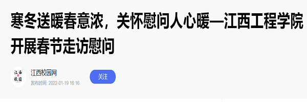 此次走访慰问既进一步拉近了学校和老党员、老干部、生活困难党员与教职工的距离,又增强了学校的凝聚力、亲和力,使他们切身感受到“江工有大爱、教师有归属、学生争自强”,达到了“慰问一人,温暖一户,带动一片”的良好社会效果;更充分发挥了走访慰问的政治功能,使广大党员、干部和人民群众深切感受到组织的关怀和温暖,进一步激励党员、干部和人民群众弘扬伟大建党精神,不忘初心、牢记使命,开拓进取、攻坚克难、奋发有为,勇毅前行,以优异成绩迎接党的二十大胜利召开。
