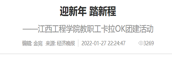 近日,江西工程学院为了丰富学校教师的校园文化生活,更好的营造校园和谐气氛,激发全校教师爱国爱校热情,充分展示教师才艺,构建团结、向上、和谐、健康的校园文化氛围,让教师们拥有一个积极向上的精神风貌,经学校研究决定在全校教职工中开展“教职工卡拉OK”团建活动,缓解教师们的工作压力,丰富其业余生活,增强教师的团队凝聚力,展示学校教师朝气蓬勃、拼搏奋进的精神风貌,为老师们搭建了展示自我的平台。