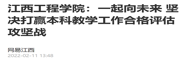 2021年,江西工程学院本科教学工作合格评估结合党史学习教育活动,深入学习领会习近平新时代中国特色社会主义思想,进一步统一思想、统一意志、统一行动,各项工作稳步推进,力争实现学校教育高质量发展,坚决打赢本科教学工作合格评估攻坚战。