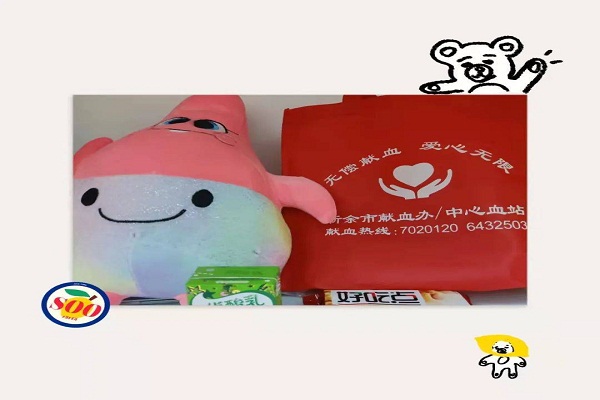 有可爱的派大星玩偶,牛奶和饼干,还有一本独属于自己的无偿献血证。