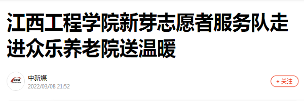 春风送暖,爱心送情。3月5日,是一个特别的日子,是学雷锋59周年纪念日,也是第23个中国青年志愿者服务日。为进一步引领师生继承“敬老爱老”的优良传统美德,弘扬志愿服务精神。江西工程学院大数据与计算机学院团总支学生会青协部组织了新芽志愿者服务队,走进众乐养老院,为老人带去慰问品和温暖的陪伴。