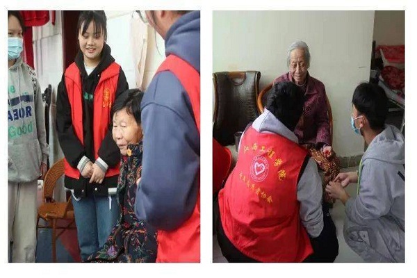 都说“常回家看看”,我们都知道,他们要求不多,只是需要一种内心精神上的陪伴,只是希望有人能够经常去看望、聊聊天,让他们感觉不再孤单。作为新时代的青年志愿者,此次活动的宗旨是给他们带来心灵上的慰藉。活动过程中,大家积极主动帮忙打扫卫生、整理房间,热情大方地陪在老人身旁和他们聊天,有时老人们讲话不是很利索,有时普通话夹杂家乡话,但我们感到很快乐,言语不同并不会影响我们交流,她们给我们分享生活小乐趣、以前小故事。时光易逝,临别之际,他们很热情地握着我们的手,跟我们挥手告别,还对我们说“要好好学习,不辜负父母的期望,也希望你们能常来”。看着她们脸上的笑容,想到他们的故事和谆谆教诲,我们都很感动,表示一定会努力学习,并且有时间再来陪伴他们。