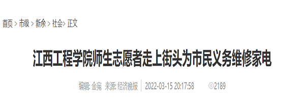 新余市民胡小琴这样评价,“江西工程学院师生精心为市民办实事,令大家很感动,对每一个家电的维修,他们都很认真,都有成效,很感谢他们开展了这项有意义的实践活动!”