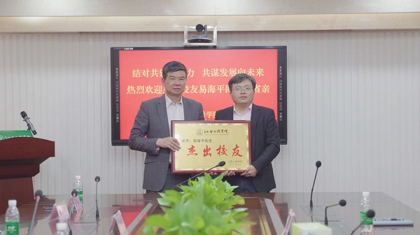 (本网讯 于永清 报道)近日,江西工程学院校友、指芯智能科技董事长易海平回母校省亲,感激母校培育之恩,被江西工程学院董事长杨名权授予“江西工程学院杰出校友”称号。