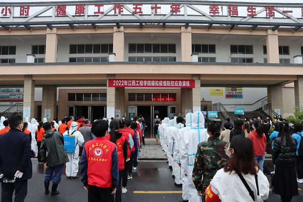 3月30日下午,江西工程学院在天工校区中心食堂门口开展模拟疫情防控应急演练。学校组建11个疫情防控工作小组,110人参加演练和观摩学习。
