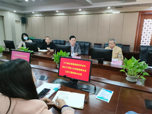 4月19日下午,2022届全国高校毕业生就业工作第三次调度视频会议在京举行,教育部高校学生司副司长吴爱华、教育部学生服务与素质发展中心副主任宁小华出席会议并讲话,会议由教育部高校学生司就业处处长唐小平主持。我校在天工校区行政楼7楼会议室设置分会场,党委副书记、校长张晨曙,副校长鲍步云出席会议,各教学院就业专干、毕业班班主任(辅导员)、就业处全体人员参加视频会议。