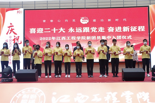 2022年是党的二十大召开之年,是中国共产主义青年团成立100周年,为引领广大团员青年不忘初心,牢记使命,坚定不移听党话、跟党走,继承和发扬党的优良传统,江西工程学院于5月2日下午在体育馆举行了“喜迎二十大 永远跟党走 奋进新征程”为主题的集中入团仪式活动。学校党委书记、督导专员胡涌,党委副书记冯赟出席仪式,各学院团总支书记及300余名团员青年代表参加活动。