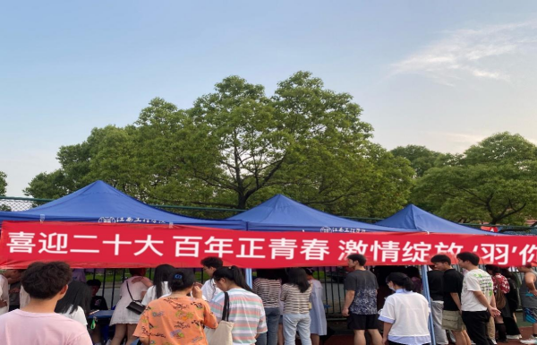 (本网讯 郑琳 报道)为丰富我校青年学生的校园文化生活,活跃校园文化氛围,提高我校学生身体素质,传递我校学生社团文化品牌。由学校团委主办、沐阳羽毛球协会承办于4月30日—5月2日举办“喜迎二十大,百年正青春,激情绽放,‘羽’你同行”主题的羽毛球比赛。这是一次抒发豪情、展示风采、凝心聚力的一次文体活动,充分展示羽毛球爱好者的个人魅力和技能。
