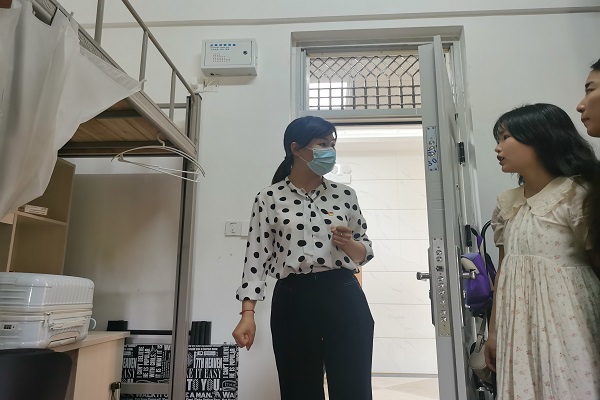 下午五时,冯赟来到学生宿舍,与同学们热情交谈,深入了解同学们的日常学习生活。他对同学们说:“当前国内疫情形势依旧严峻,大家一定要积极配合学校疫情防控措施,在学习生活中遇到困难要及时反馈。同时要加强对自身专业的了解,树立目标,把握机会,努力学习,为自己、为母校争光。”