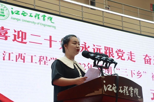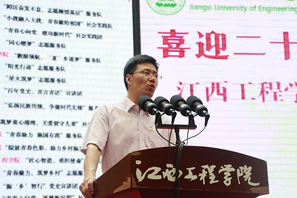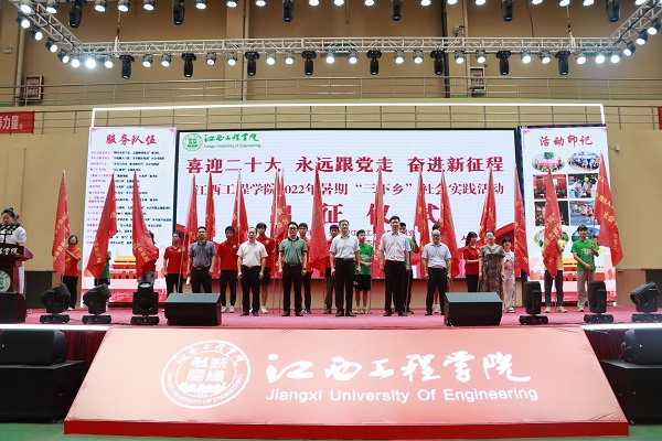 为深入学习宣传贯彻习近平新时代中国特色社会主义思想和党的十九届历次全会精神,贯彻落实习近平总书记关于青年工作的重要思想,江西工程学院校团委于2022年7月1日在天工校区体育馆举行了以“喜迎二十大,永远跟党走,奋进新征程”为主题的2022年大学生暑期“三下乡”社会实践活动启动仪式。党委书记、督导专员胡涌,党委副书记冯赟,党委副书记、纪委书记黄志良出席,相关职能部门负责人以及各服务队指导老师和志愿者代表300余人参加活动。