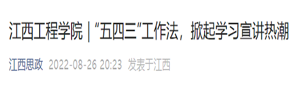 为推动学习宣传贯彻习近平总书记在省部级主要领导干部专题研讨班上的重要讲话精神和《习近平谈治国理政》第四卷等重要内容精准落地,江西工程学院精心部署、积极行动,推行“五四三”工作法,努力把学习宣传贯彻习近平总书记在省部级主要领导干部专题研讨班上的重要讲话精神和《习近平谈治国理政》第四卷等重要内容主题宣讲做实做细做活,进一步推动党的创新理论往深里走、往心里走、往实里走。