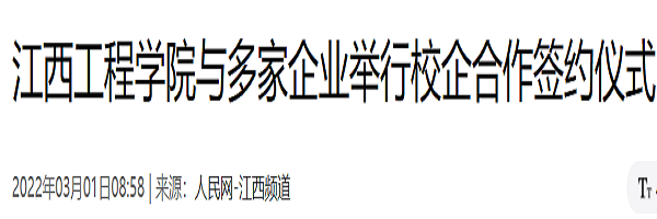 为彰显应用型办学特色,加快人才培养模式创新、促进产教深度融合。2月28日上午,江西工程学院智慧产业学院与新余市数字产业投资发展有限公司、南昌海康威视数字技术有限公司、江西和尔惠信息技术有限公司签约仪式举行。