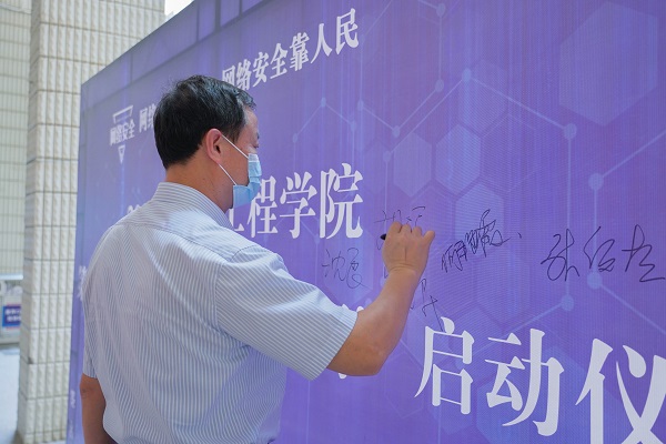 (本网讯 校报记者团 李琴妹 肖雄滔 报道)为深入贯彻落实习近平总书记关于网络强国的重要思想和习近平总书记对网络安全工作“四个坚持”的重要指示精神,迎接党的二十大胜利召开,9月5日下午,我校在天工校区学术报告厅一楼举办2022年网络安全活动周启动仪式暨网络安全讲座,党委书记、督导专员胡涌,党委委员、副校长沈良,党委委员、校长助理邹建民,绿盟科技集团股份有限公司安全顾问陈乾,党委办公室、宣传部、新媒体运营中心、现代教育技术中心等相关部门负责人和全校师生代表150余人参加启动仪式。党委委员、宣传部长于永清主持启动仪式。