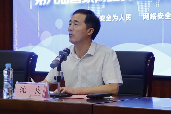 沈良在讲话中指出,党的十八大以来,习近平总书记围绕“维护网络安全”多次发表重要讲话,立意高远,内涵丰富,思想深邃,是指导新时代维护国家网络安全工作的强大思想武器。我校通过举行网络安全宣传周,对进一步深入学习贯彻习近平总书记关于网络安全的重要讲话精神,深入宣传普及网络安全知识,切实提高广大师生网络安全意识和防护技能,营造健康文明的网络环境具有重要意义。