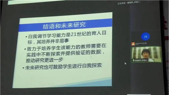 此次讲座以学生的自我调节学习为题,从课堂评价的角度,说明教师支持学生自主学习的重要性,以及可以采用的方法。讲座以高校大学生的英语学习为背景,运用两个实际教学案例,说明该类实践的效果,不足和理论思考。