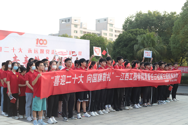 国庆华诞到来之际,江西工程学院举办了“喜迎二十大 向国旗敬礼”——青春告白祖国主题教育活动,通过升国旗、集体宣誓、合唱红歌、主题书画展的方式,表达当代师生爱党爱国、积极向上的精神风貌。