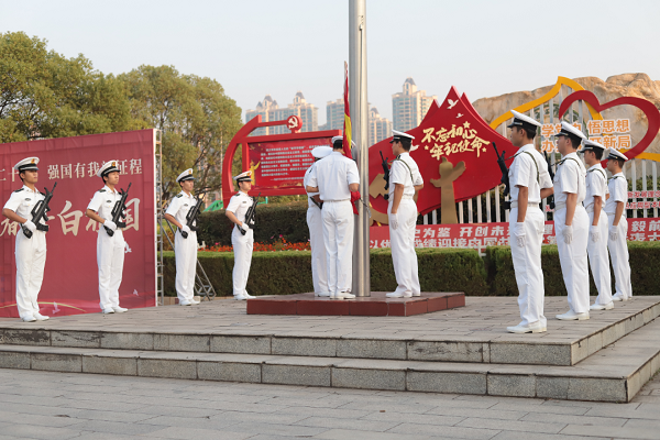 9月30日早上7点,近千名身着统一服装、手持小国旗的师生汇聚在国旗下,举行了庄严的升国旗仪式,在校国旗护卫队的护送下,师生们目送国旗在朝阳下冉冉升起。随后学校党委专职副书记、纪委书记黄志良发表了国旗下的讲话,希望同学们做信仰坚定、爱国爱民、勇于担当的时代新人,学生代表则在发言中表示要把个人理想融入国家和民族的事业中,为实现中华民族伟大复兴的中国梦贡献青春力量。同学们面向国旗集体宣誓,庄严承诺,愿以吾辈之青春,复兴伟大之中华,把青春献给党!大家一同合唱《我和我的祖国》,现场洋溢着浓浓的爱国之情。“建功新时代 喜迎二十大”、“共筑中国梦”、“青春向党 奋斗强国”等标语牌成为了现场一道别样的风景。师生们还在主题为“青春告白祖国”签名墙上签名,表达要把个人理想融入国家和民族的事业中,为实现中华民族伟大复兴的中国梦贡献青春力量的坚定决心。