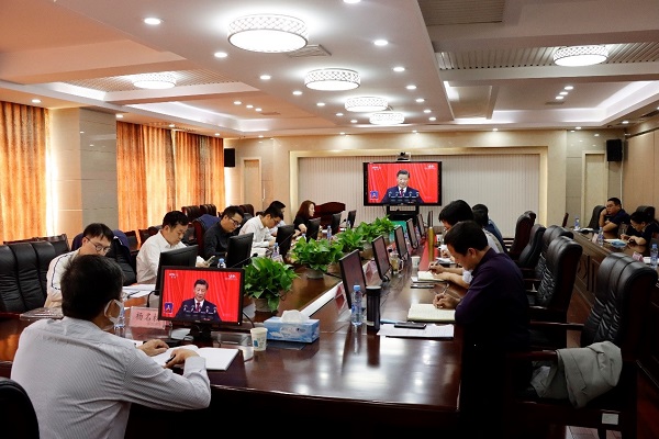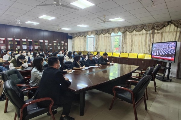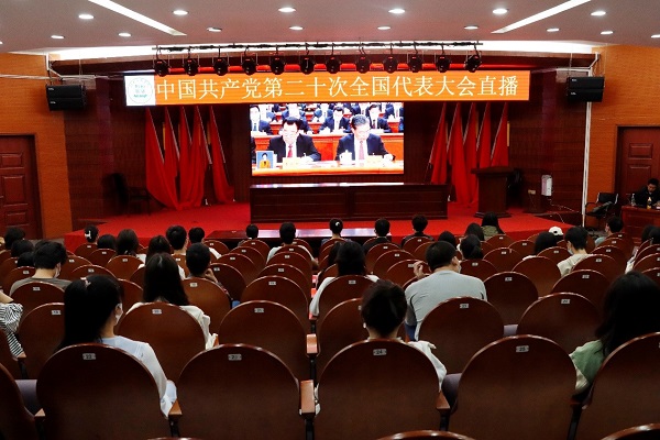 (本网讯 俞少华 报道)10月16日上午10时,中国共产党第二十次全国代表大会在北京人民大会堂隆重召开,习近平总书记代表第十九届中央委员会向大会作报告。我校认真组织师生集中收听收看党的二十大开幕会盛况、聆听学习习近平总书记所作报告。学校全体党政领导班子成员及党委中心组成员在行政楼七楼参加收看。