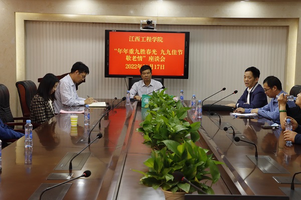 2022年10月17日下午,江西工程学院工会在天工校区行政楼七楼会议室组织老教职员工召开了以“年年重九胜春光,九九佳节敬老情”为主题的座谈会。董事长杨名权,党委副书记、校长张晨曙,党委副书记、副校长冯赟参加了座谈会。工会副主席闫德林主持了会议。