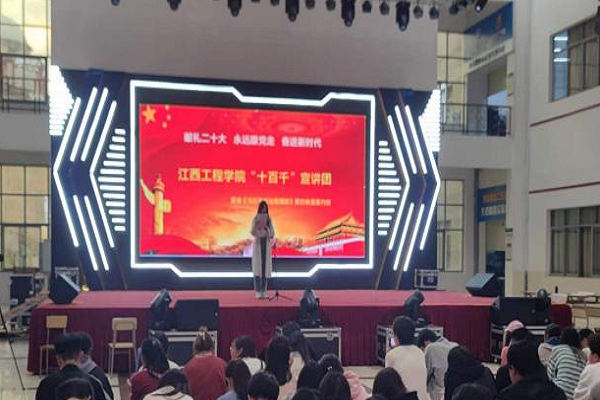 当好党的二十大精神传播者,让党的声音响彻学校内外。连日来,江西工程学院“十百千宣讲团”将宣讲行程安排得满满的,为师生群众面对面宣讲。10月中旬,学校第一时间出台了《江西工程学院学习宣传贯彻党的二十大精神总体安排实施工作方案》等文件,成立了党委书记、校长任组长的学习宣传工作领导小组。组建了学习宣传贯彻党的二十大精神“思政课教师宣讲团”“博士宣讲团”“辅导员宣讲团”“妇联宣讲团”“学生干部宣讲团”五支队伍,实现校内宣讲全覆盖。
