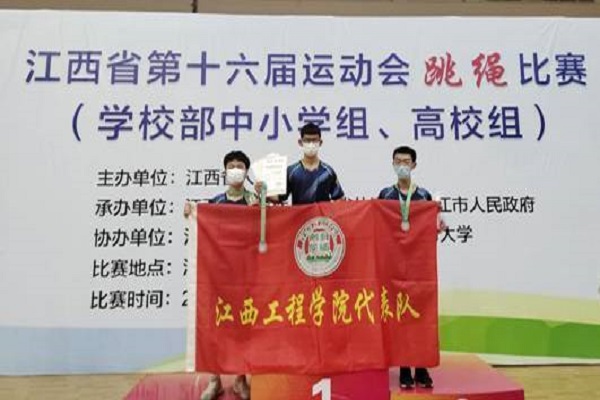 11月9日至10日,江西省第十六届运动会跳绳比赛在江西中医药大学体育馆举行。本次比赛共有大中小学46支队伍,775名运动员参赛。我校三名学生在军事体育教学部副主任陈世武领队,张文斌主任、钟小芳老师为教练的带领下参加了此次比赛,收获1金2银1铜的好成绩,其中土木工程学院吴洪刚获得1金,区块链学院梁搏夺得2银,教育学院刘子杰获得1银1铜。