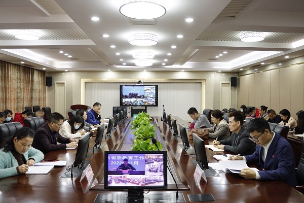 我校党委委员、董事长助理、校长助理、统战部部长乐俊杰,各党总支、直属党支部书记,统一战线工作领导小组成员,民主党派代表等共计40余人在学校行政楼七楼会议室参加视频会。