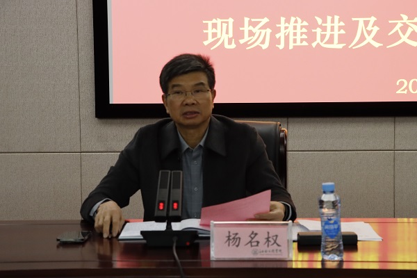 为贯彻落实《江西工程学院创建高水平应用型本科高校建设实施方案》的文件精神,2022年11月18日下午,在行政楼三楼会议室召开江西工程学院创建高水平应用型本科高校现场推进及交流会。学校董事长杨名权,党委委员、副校长沈良,党委委员、副校长黄海军,党委委员、副校长刘德华出席会议,相关职能部门负责人及各教学院(部)教学管理干部参加会议。会议由刘德华主持。