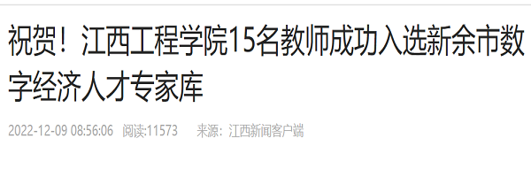 近日,为推动新余市数字经济快速发展,推进数字经济和实体经济深度融合,提升新余市数字经济领域政策研究、决策咨询等工作的科学性、规范化和专业化水平,经新余市发展数字经济领导小组办公室审核决定,江西工程学院15名教师成功入选新余市数字经济人才专家库。