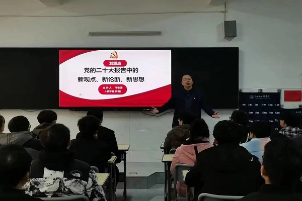 为提高大数据与计算机学院基层党组织思想政治水平和能力,深入学习党的二十大精神,进一步做好校园疫情防控管理工作,大数据与计算机学院党总支于12月7日上午在C栋409开展党的二十大报告宣讲活动。此次宣讲由学生党支部书记胡木兰主持,校党委委员、宣传部部长于永清主讲。全院学生党员及部分入党积极分子参加。