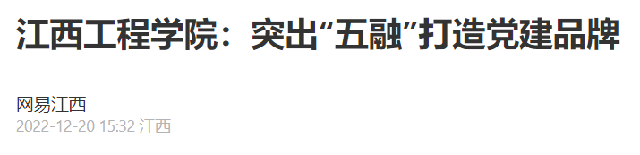 江西工程学院党委以提升组织力为重点,注重突出政治功能,结合“党建+”和“一站式”学生社区综合管理改革工作实际坚持守正创新,突出“五融”,打造学校党委融心、融智、融文、融亮、融魂党建品牌,着力把学校基层党组织建设成为宣传党的主张、贯彻党的决定、领导基层治理、凝聚师生力量、助力学校教育高质量发展的坚强战斗堡垒,营造积极和谐的校园文化氛围。