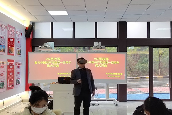 教育学院院长、党支部书记晏小庆:江西工程学院社区思政VR实践中心通过基于VR技术的思政课实践教学新模式,学生可以在浓缩的时空情境之中,很好地领悟实践资源的精髓及其系统教育元素,从而增加了参与思政课实践教学活动的兴趣,提升了实践教学的活动融入度。让学生在“视听触”虚拟仿真环境中体验了中国共产党的百年辉煌历程。
