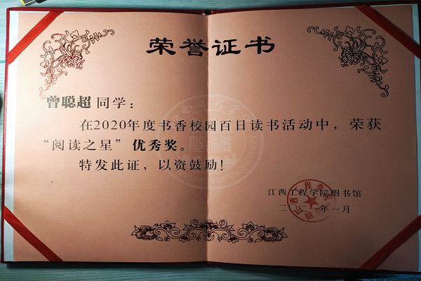 2020年 江西工程学院“阅读之星”优秀奖