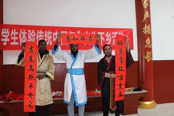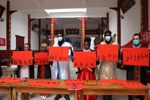 1月16日,江西省新余市渝水区委宣传部与江西工程学院在渝水区水北镇伍塘村联合开展“写春联 送祝福 留学生体验传统中国年”文化下乡活动,让身在异乡的留学生们感受浓浓的中国年,用丰富的艺术形式营造起留学生与村民之间欢庆祥和、其乐融融的过年氛围。