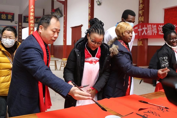 1月16日,江西省新余市渝水区委宣传部与江西工程学院在渝水区水北镇伍塘村联合开展“写春联 送祝福 留学生体验传统中国年”文化下乡活动,让身在异乡的留学生们感受浓浓的中国年,用丰富的艺术形式营造起留学生与村民之间欢庆祥和、其乐融融的过年氛围。