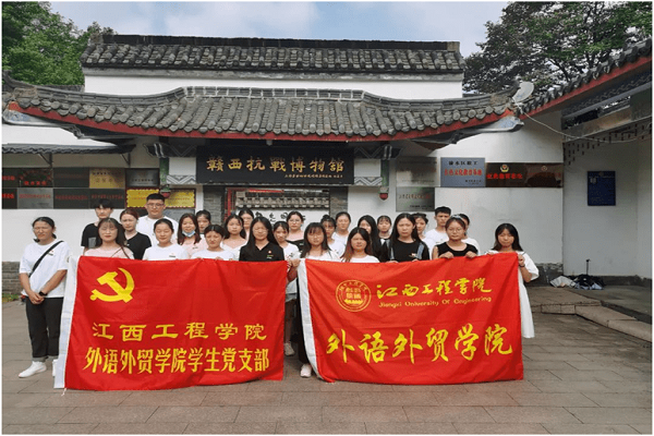 外语外贸学院党总支依托爱国主义教育基地,充分利用江西资源禀赋优势,打造“党建+红色文化”育人品牌。以志愿服务、社会实践、主题党日活动的形式,结合党史学习教育活动,开展了如“前往九龙山革命纪念馆参观学习”“三下乡社会实践活动”“仰天岗重温入党誓词”“不忘初心敬老爱老、牢记使命奋勇担当”等活动,通过在其中有意识地融入理想信念、家国情怀、道德品质和法治精神等内容,在传统文化育人的基础上,给予师生多维度的感染作用,同时充分发挥党总支示范的典型带动作用,促使学生端正入党动机、坚定政治信仰、明晰理想追求。