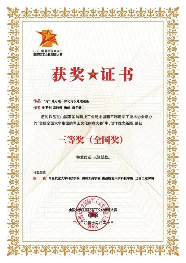 13、2020首届全国大学生军工文化创意设计大赛国家级三等奖