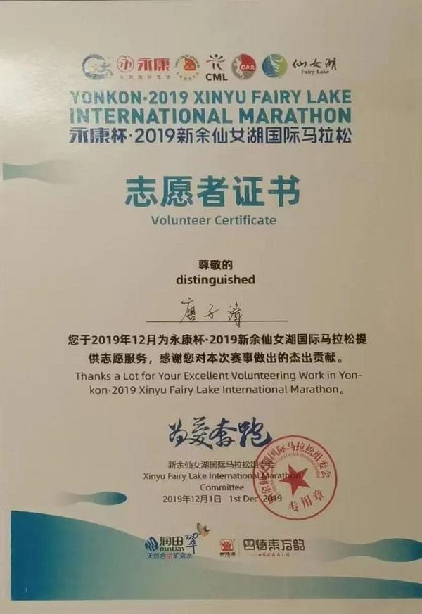 3、市级2019年新余市马拉松志愿者