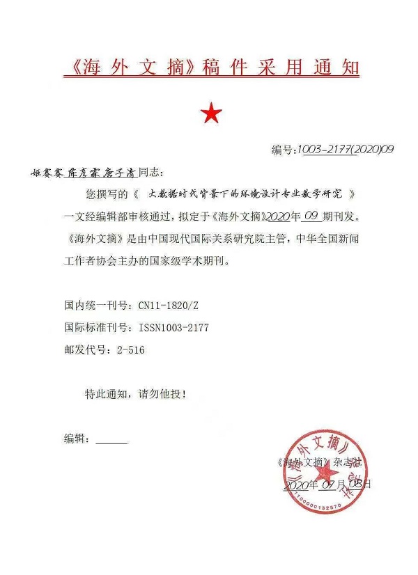 17、论文《大数据时代背景下的环境设计专业教学研究》