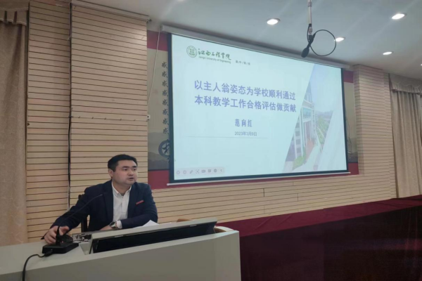 首先,范向红在会上进行《以主人翁姿态为学校顺利通过本科教学工作合格评估做贡献》主题动员讲话,希望同学们提高主人翁意识,本科教学工作合格评估既是对学校本科教学水平的综合检查,也是对同学们学习能力、学风状况、精神状态、思想作风、行为文明的一次全面检查,事事都是观测点,人人都是得分手,每个人都要有“爱校如家”的观念,把本科教学工作合格评估当作自己的事,主动想主动做,积极参与本科教学工作合格评估工作,为本科教学工作合格评估工作增光添彩。