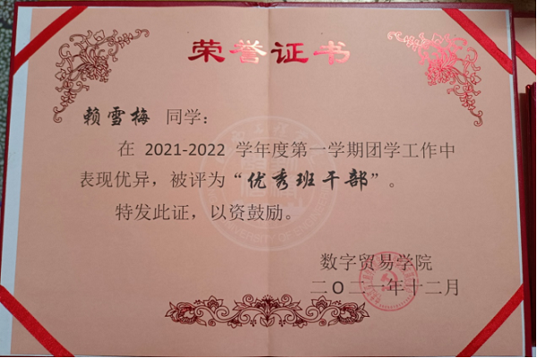 1.2021-2022学年,被评为“优秀班干部”