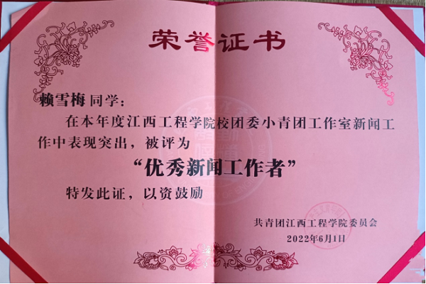 6.2022学年,荣获校团委小青团工作室“优秀新闻工作者”