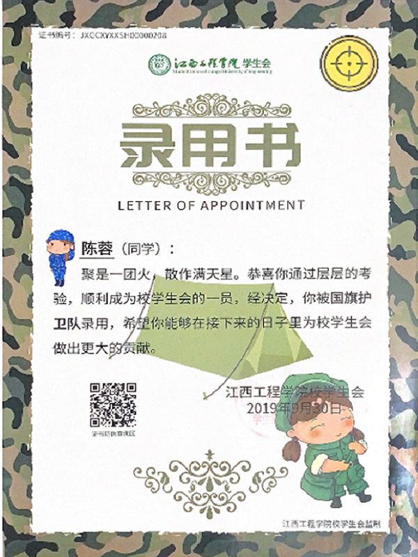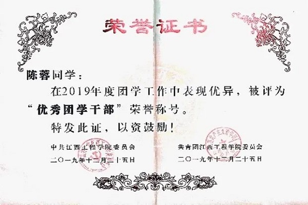 13、2019年荣获校级“优秀团学干部”荣誉称号