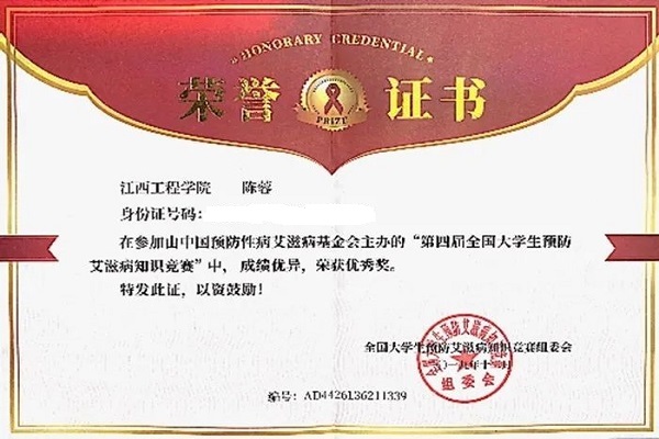 6、第四届全国大学生预防艾滋病知识竞赛优秀奖