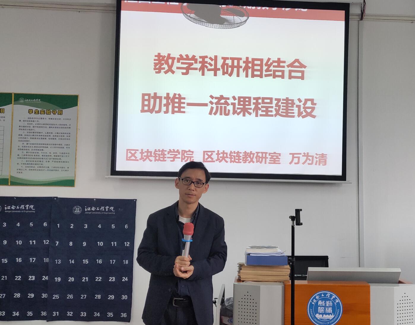 4月19日下午,由教务处教师发展中心和区块链学院共同举办的以“教学科研相结合,助推一流课程建设”为主题的教学沙龙活动在仙女湖校区实训楼A203如期开展。