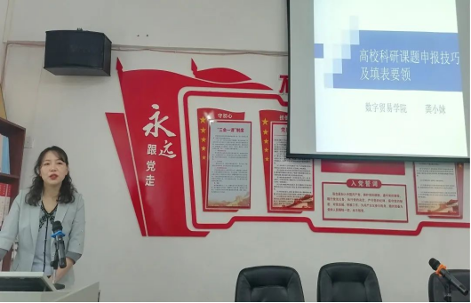 为了进一步激发学院教师课题申报兴趣,提升课题申报质量及教师科研水平,分享课题申报经验及技巧,数字贸易学院于4月26日15:30开展2022-2023学年第二学期教学沙龙活动,主题为“高校课题申报技巧及填表要领”,活动由学院吴娟副院长主持,学院龚小妹副教授主讲。