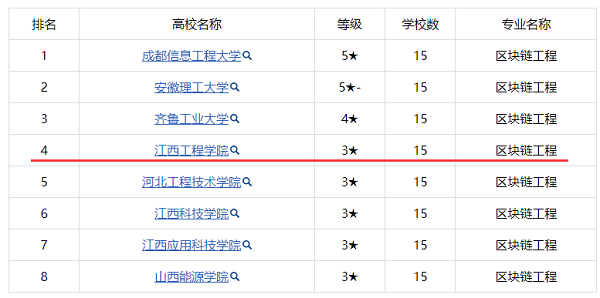 另外,2022—2023年中国大学分专业竞争力排行榜前20强(3星以内)已经发布,我校区块链工程专业排名第四。