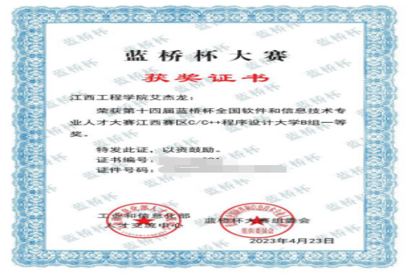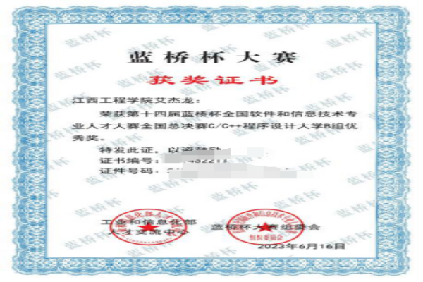 在学习上,艾杰龙同学积极向上,努力提高自己的学习能力,全面提升自己。他加入到了学院的软件工作室,并积极投入到竞赛的研究中,以赛促学。在短短的两年时间里,他迅速成长,并取得了出色的成绩。他多次获得蓝桥杯省级和国家级奖项、前沿国际竞赛ICPC等各类竞赛的证书,充分证明了他在算法和编程竞赛中的出色表现。