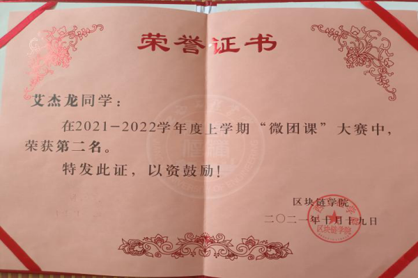 艾杰龙,男,江西鹰潭人,智慧产业学院2021级区块链工程本科1班学习委员。